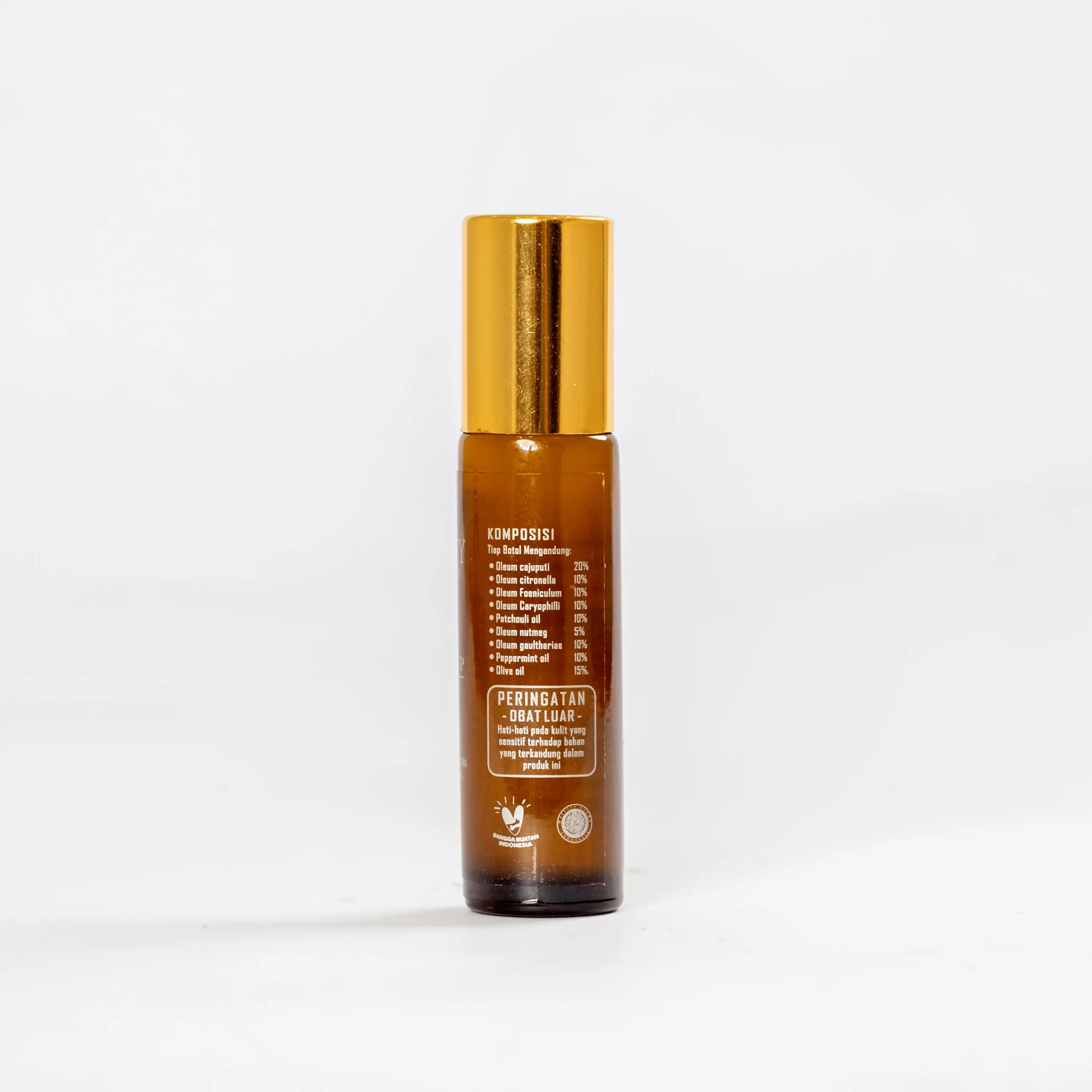 Oleum cajuputi 20% Oleum citronella 10% Oleum Foeniculum 10% Oleum Caryophilli 10% Patchouli oil 10% Oleum nutmeg 5% Oleum gaultheriae 10% Peppermint oil 10% Olive oil 15%